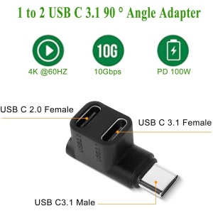 Tobo USB C Splitter Adapter,Type-C to 2 USB 3.1 USB C PD100W Charging Connector,Support Data/VideoTransfer,90 Degree USB C Male to Dual USB-C Female Adapter for Steam,Phone,Laptop TD-1110TC