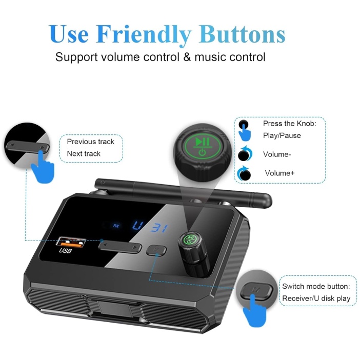 Tobo 5.3 Bluetooth Audio Adapter,Wireless Audio Adapter for Music Streaming Sound System,Tablets and Car Audio,Home Stereo Theater System,Wireless Adapter for Speakers.(R20) TD-1168WA