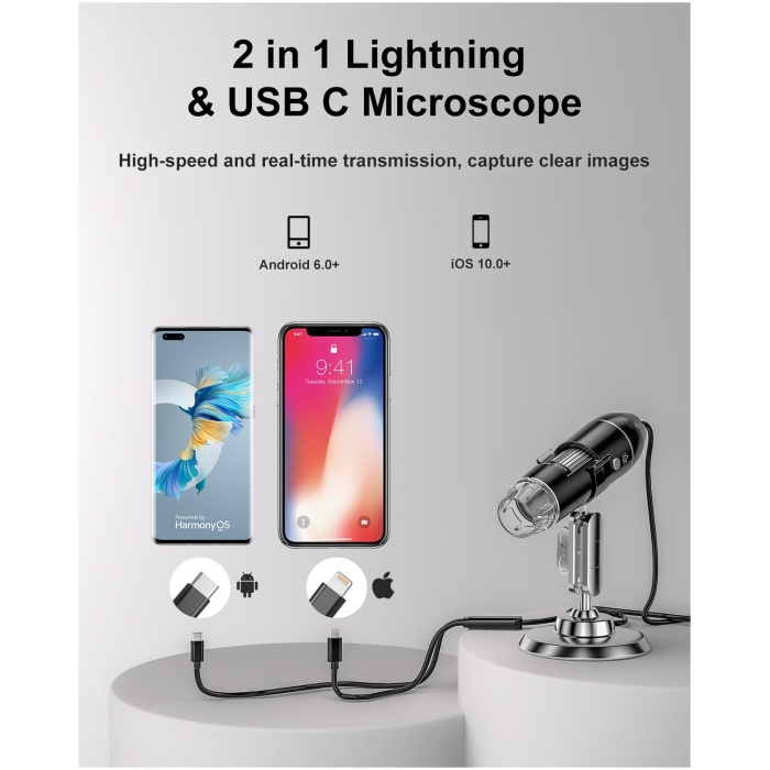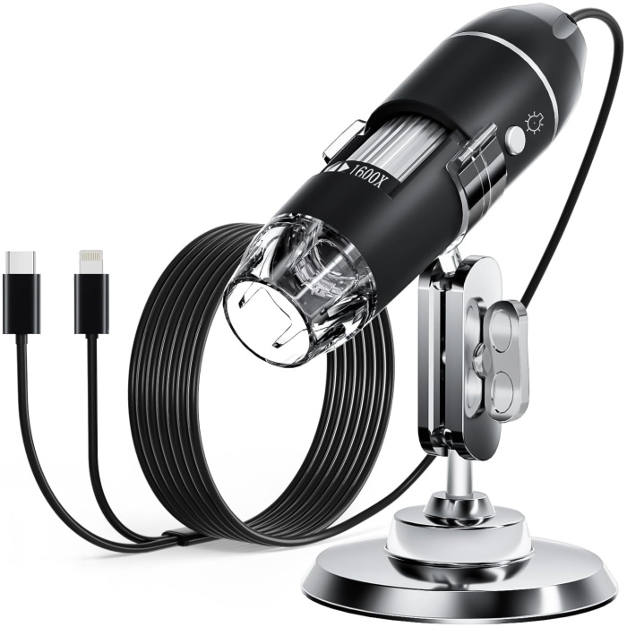 Tobo Digital Microscope Camera, Handheld USB 1440P HD Inspection Camera 50x-1600x Magnification Portable Handheld Pocket Microscopes with 8 LED & Stand, Compatible with iPhone, Android