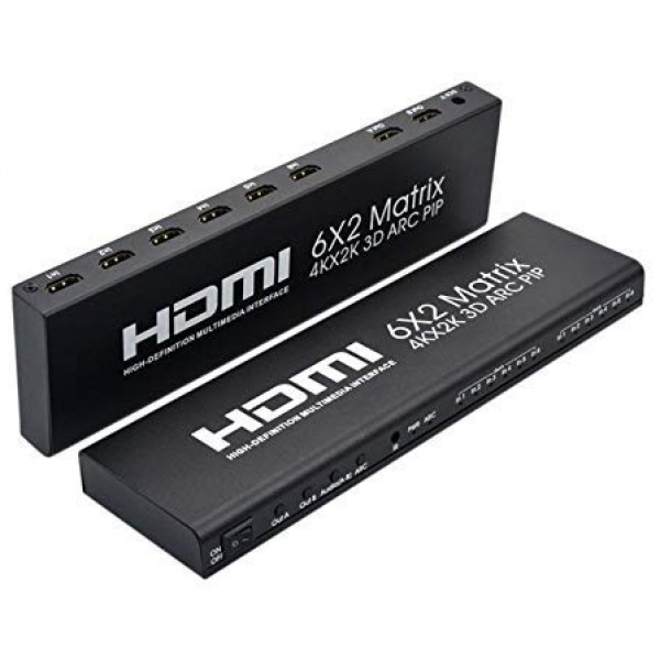 Tobo HDMI 6X2 Matrix High Definition 6 in 2 Out Support ARC 4K/30Hz PIP Function Compatible with Multiple Devices Switch…
