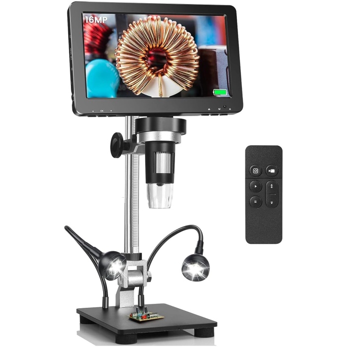 Tobo 7” Mini HDMI Digital Microscope,1200X Coin Microscope with IPS Screen, 16MP Soldering Microscope with Lights, 8.5” Long Stand, View Entire Coin, Compatible with PC/TV TD-1016IM.