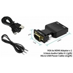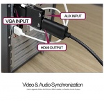 Supports Video and Audio Synchronously. VGA output/HDMI output supports video resolution up to 1920 x 1080/60Hz, Supports 24-bit;Transmit stereo audio via male 3.5mm AUX Mini Jack.