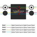 Switch to select either OPTICAL TOSLINK or COAX input and convert the signal (as is) to both its COAXIAL and OPTICAL TOSLINK output ports