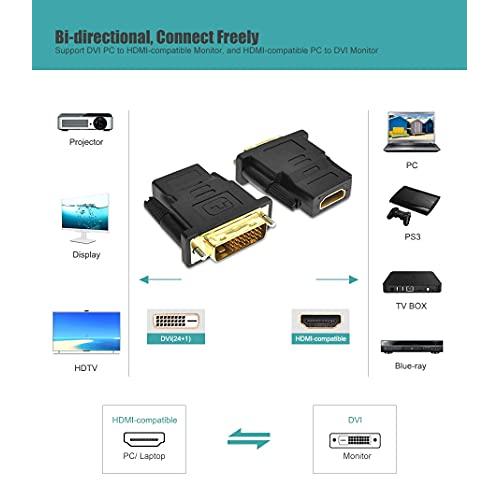 DVI to HDMI Adapter Bi-Directional DVI Male to HDMI Female Converter,