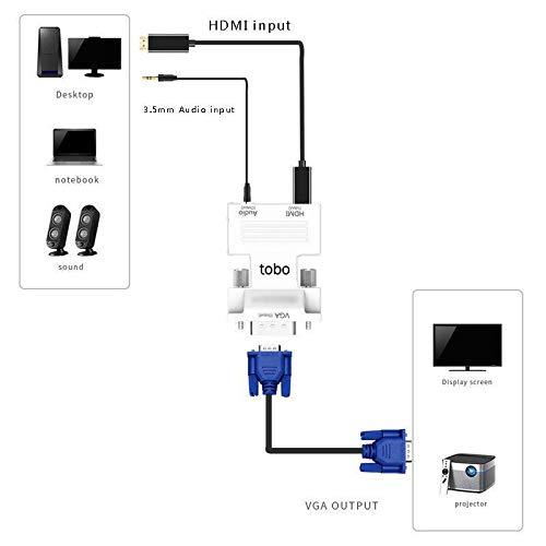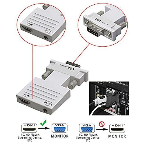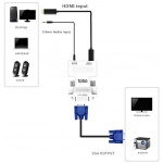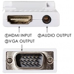 Input: HDmi, output: Vga and audio, quick and easy installation with no power adapter required