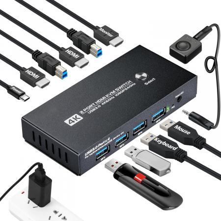 - With the USB KVM Switch, you can seamlessly share a high-definition display between two computers. Whether you’re looking to immerse yourself in a cinematic experience, enjoy gaming, or efficiently tackle work tasks, a single button press facilitates a seamless transition, vastly enhancing both your entertainment and work experiences. Are you tired of the tangled mess of wires on your desk? With an HDMI KVM switch, you can share a single high-definition monitor and a set of mouse and keyboard between two computers, getting rid of the intricate cables. It provides you with a neat and organized work environment, refreshing your workspace. A must-have for multimedia education and conference presentations ā the KVM! Effortlessly manage content between multiple computers and achieve efficient information sharing. Choose the best KVM switch to make your presentation stand out even more.
