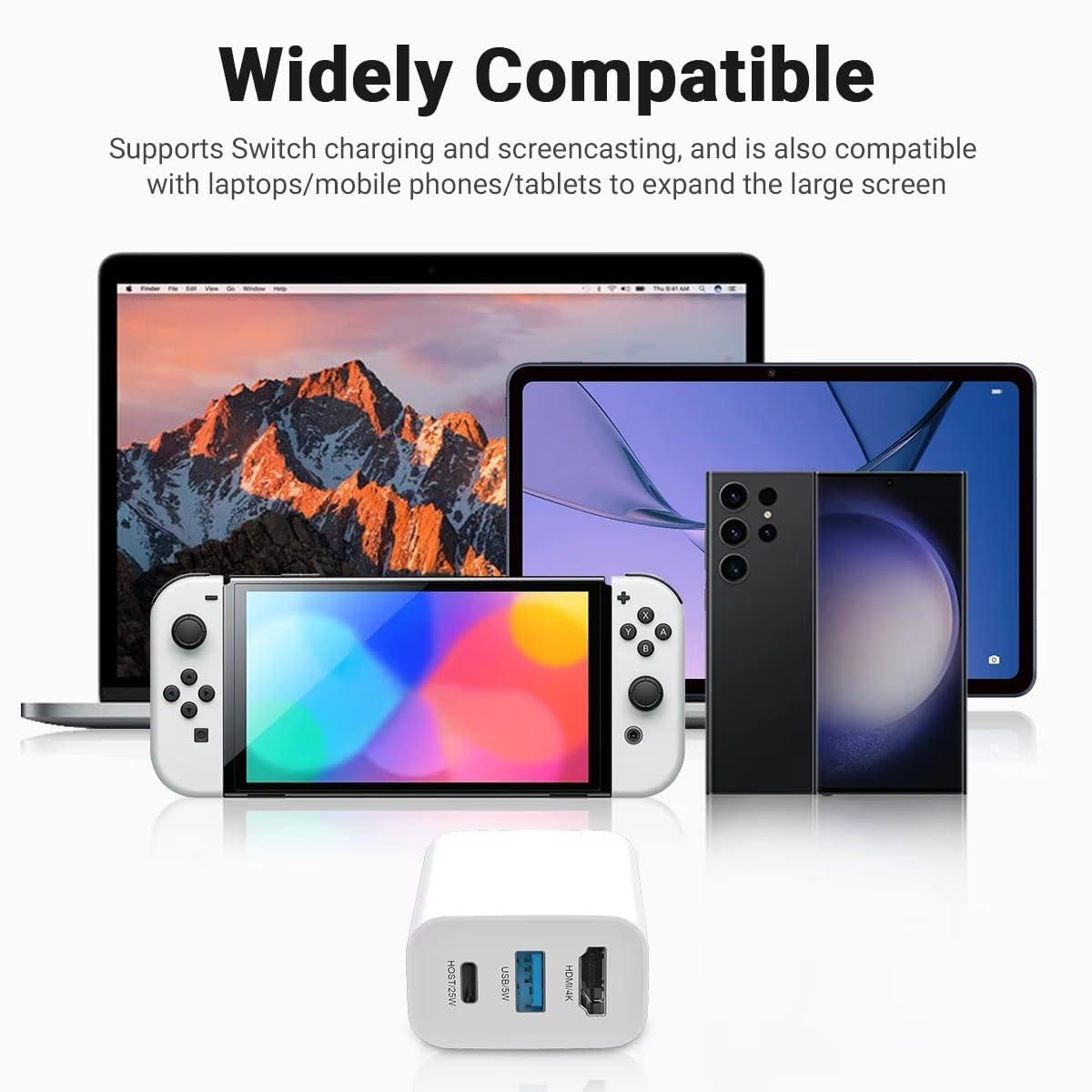 - ćMultiple Protection, Never Brick Your SwitchćThis dock features a built-in smart protection GaN chipset, safeguarding your device against overcurrent, overheating, and overvoltage.
