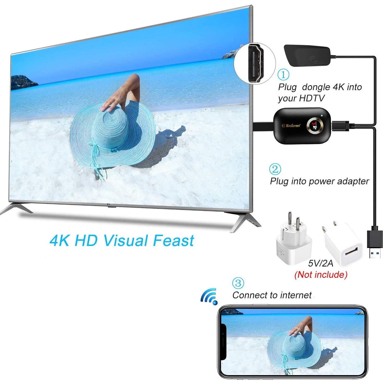 Tobo 4k Wireless Display Dongle for Screen Mirroring / Miracast / Airplay / DLNA from Mobiles, Tablets, to TV Wirelessly, 2.4G WiFi