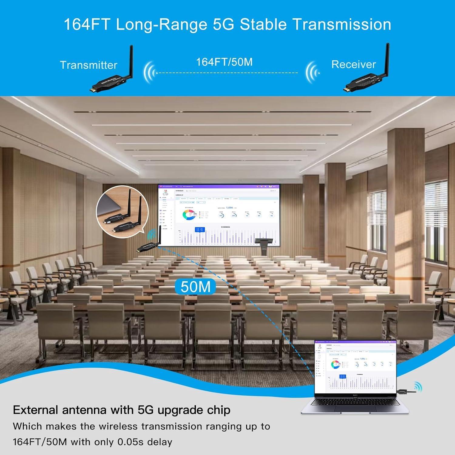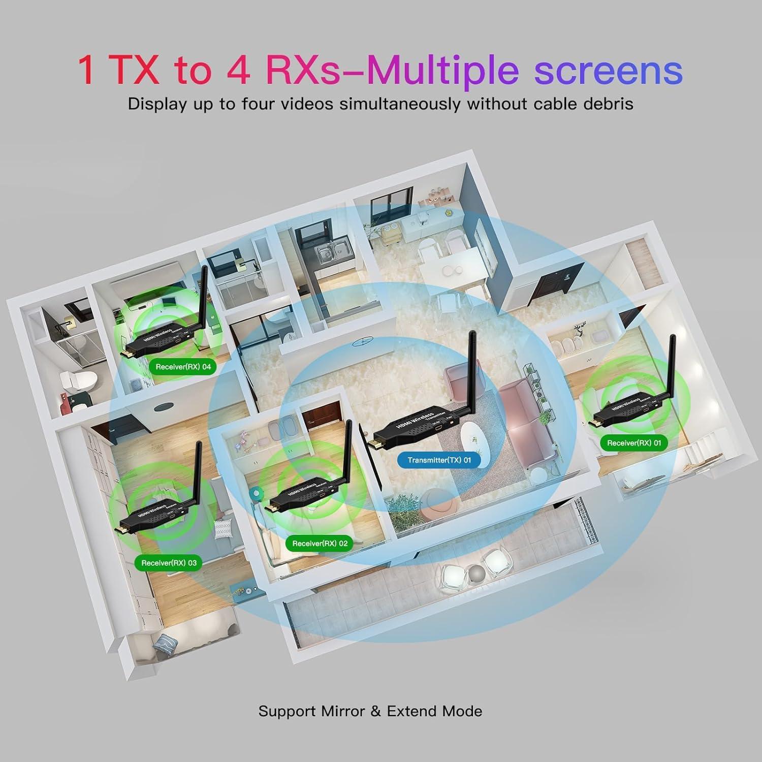 - [1080P HD video Zero-latency Transmission]-This device supports video resolutions up to 1080p@60Hz and below. with its advanced 2.4/5GHz technology ensures uninterrupted video feeding, while anti-interference features and a built-in chip prevent delays and lags, providing a smooth viewing experience.