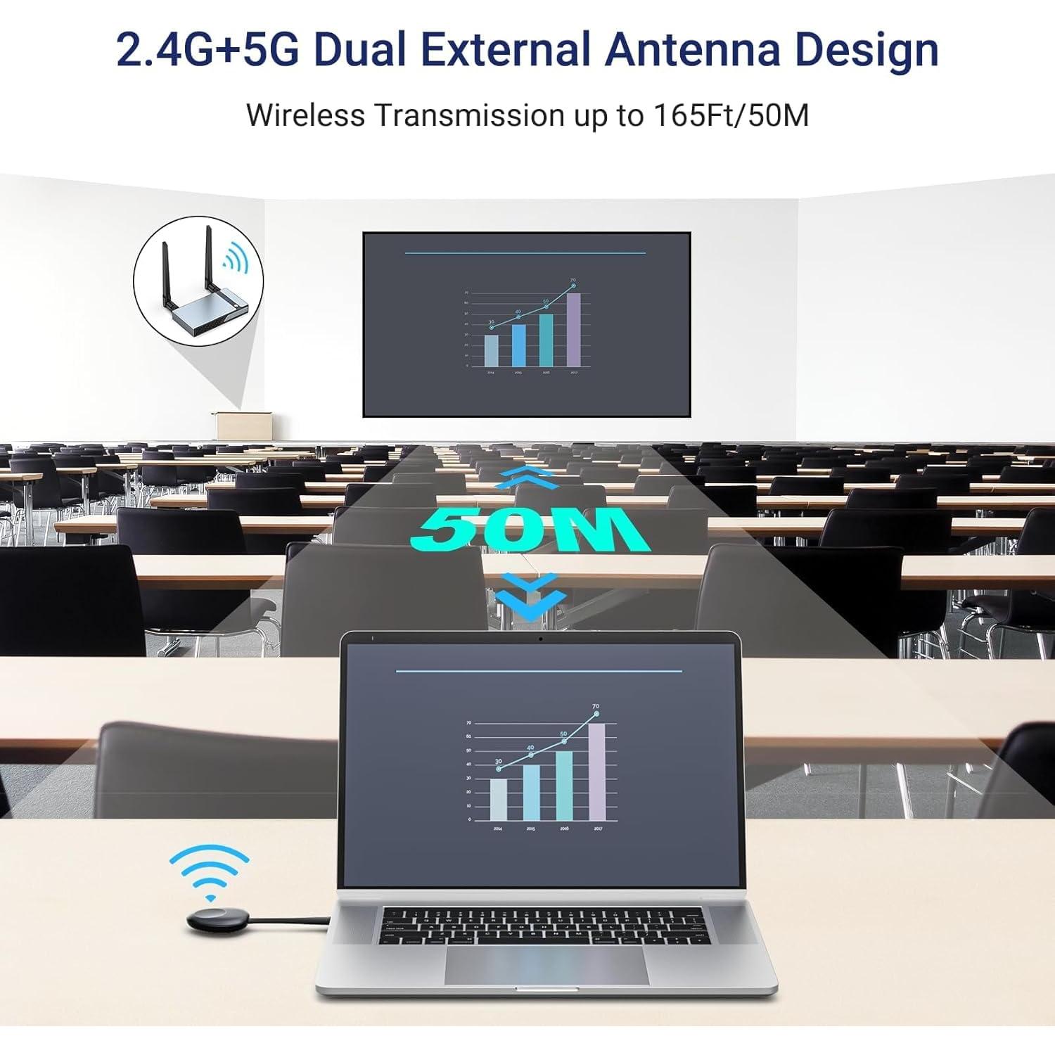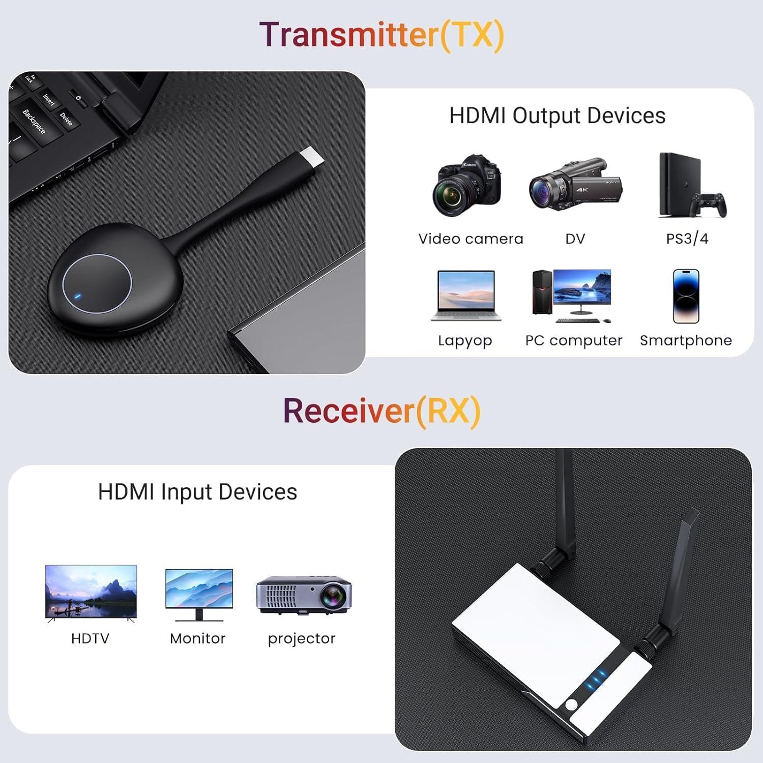 - Experience seamless connectivity with our Wireless HDMI Transmitter and Receiver, offering effortless plug-and-play functionality for streaming content to larger screens.